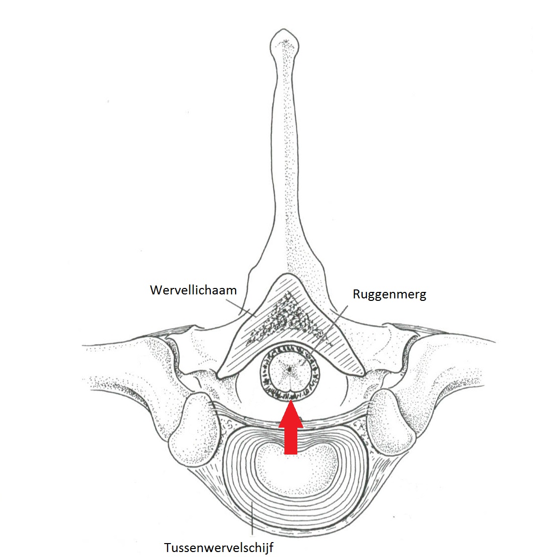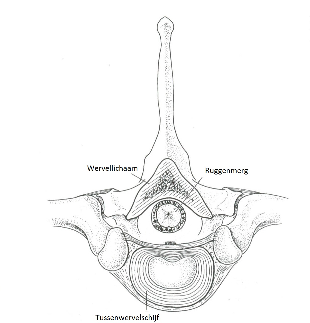 Een hernia is een uitstulping van de tussenwervelschijf die druk kan geven op zenuwen in het ruggenmerg. De ernst van een hernia kan variëren van pijn tot verlamming waarbij de hond geen pijngevoel meer kent in de verlamde poten. In de onderstaande figuren 1 wordt de anatomie van een ruggenwervel weergegeven.