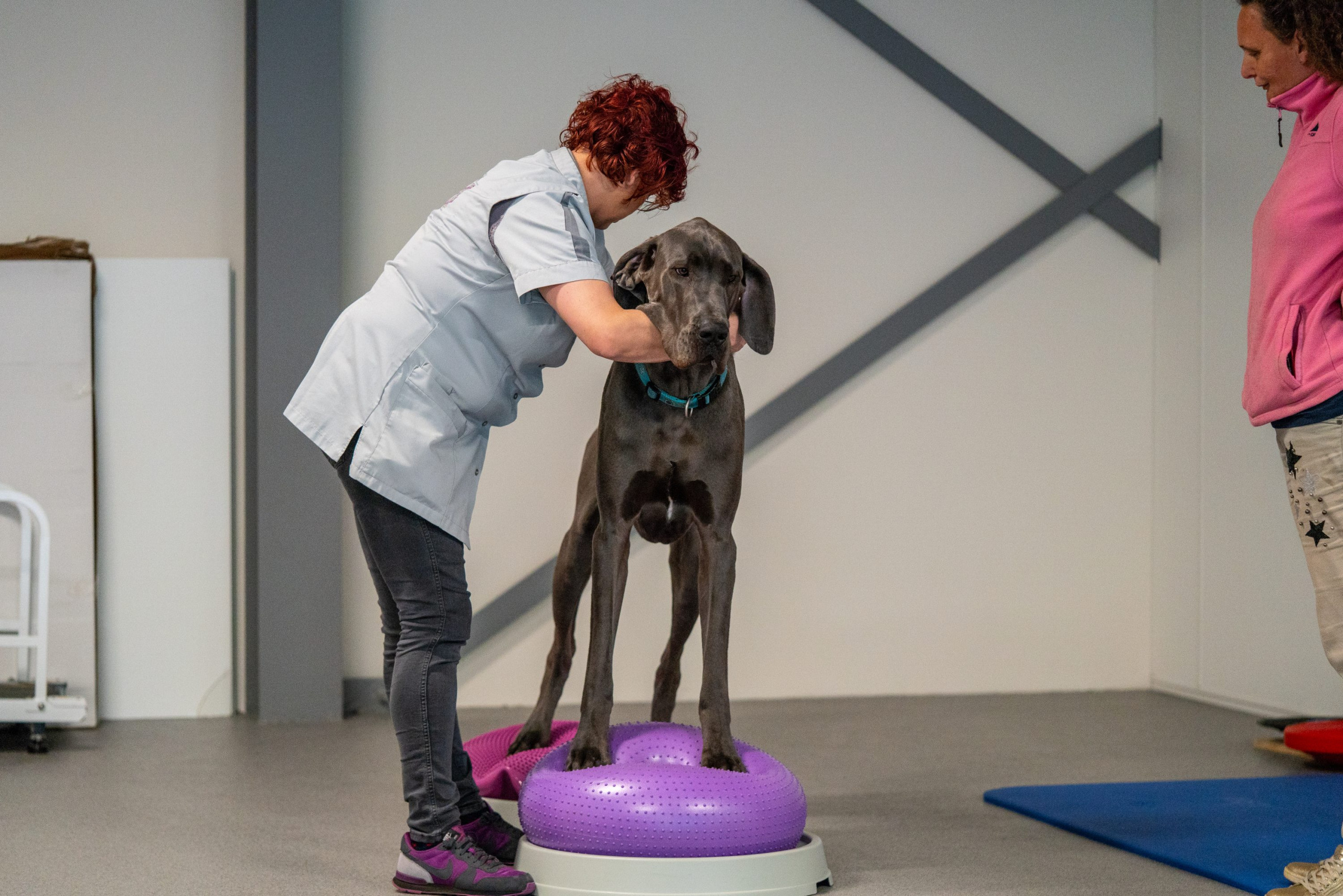Revalideren bij honden na een operatie, blessure of verlamming houdt meer in dan lopen aan de riem en de wandelingen opbouwen. Revalidatietherapie kan bestaan uit balans en coördinatie oefeningen, loopoefeningen, massage, rek- en strekoefeningen, warmte therapie, koude therapie, electrotherapie, dry needling, kinesiotape en lasertherapie. Daarnaast is ook hydrotherapie, shockwave, acupunctuur en ultrasound mogelijk. Bij revalidatie therapie wordt een individueel therapie plan opgesteld aan de hand van het probleem, de conditie van de hond en de mogelijkheden van de eigenaar.